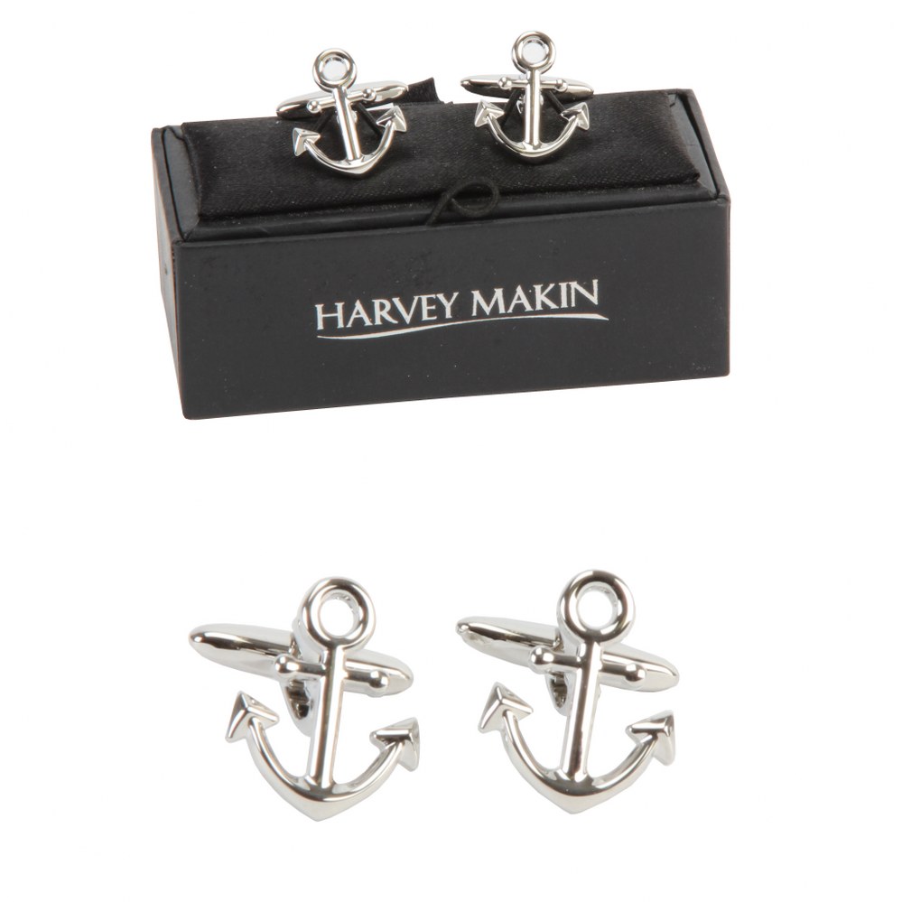 Rhodium Plated Cufflinks - Anchors - HM454