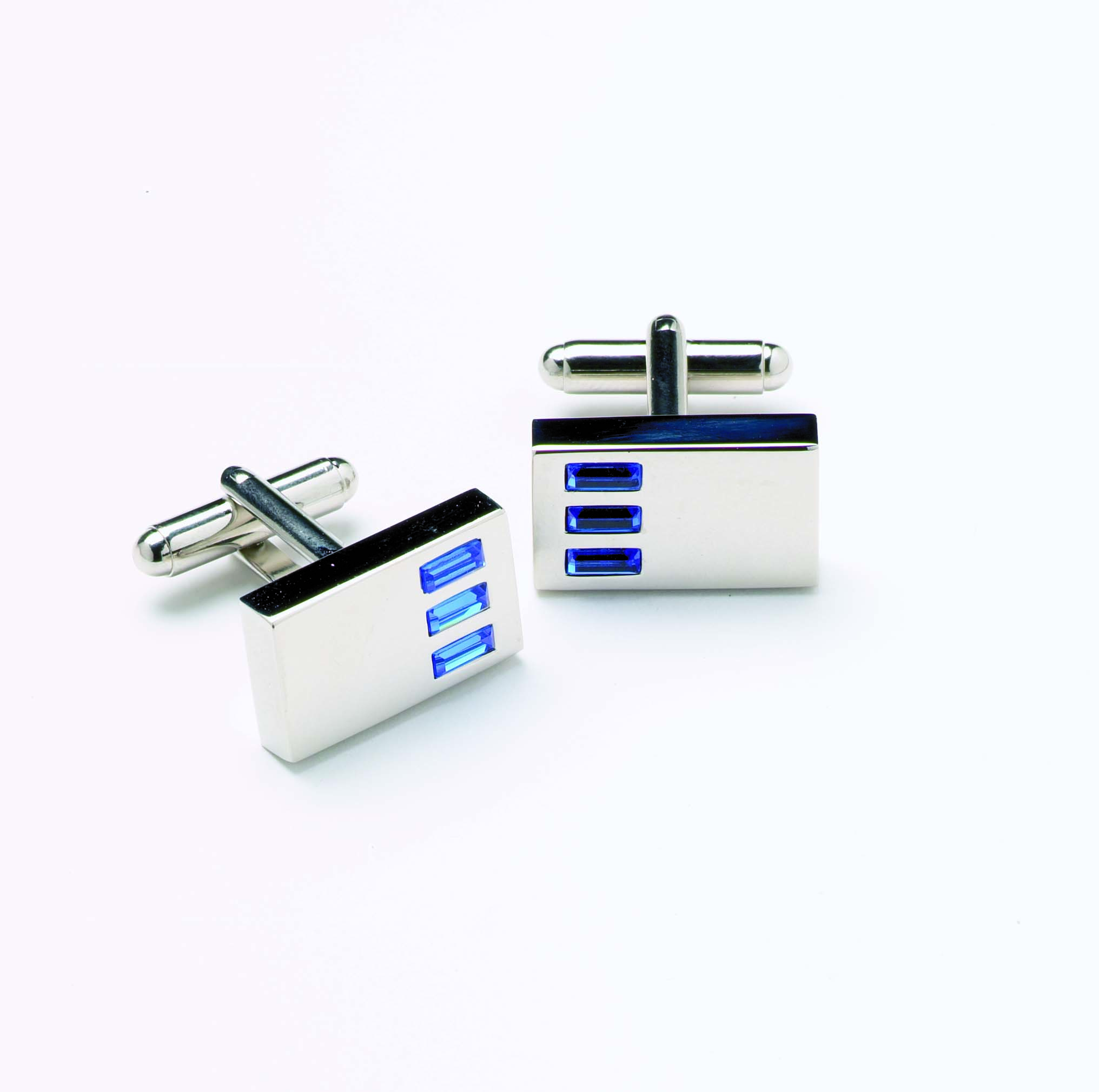 Solid Polished Rhodium Cufflinks set with Swarovski Crystals.